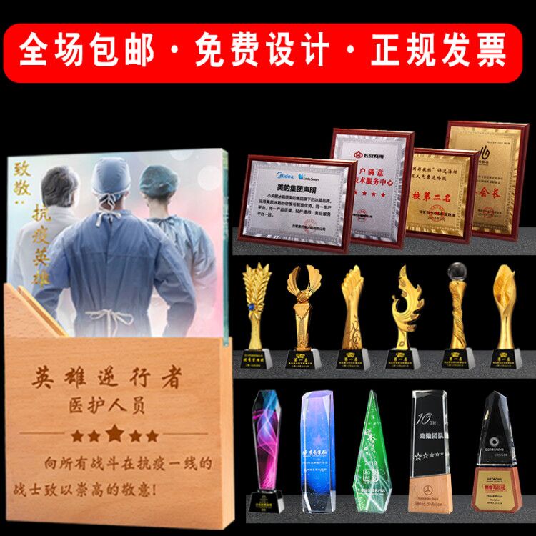 金箔奖牌定制定做水晶奖杯树脂奖杯授权牌荣誉牌实木奖牌定做牌匾